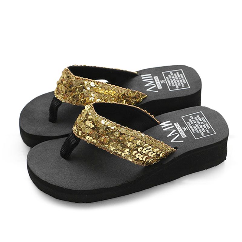 Beach Shoes Sandals Women's Slippers Wedge Heel Sequin Flip-Flops Breathable And Comfortable
